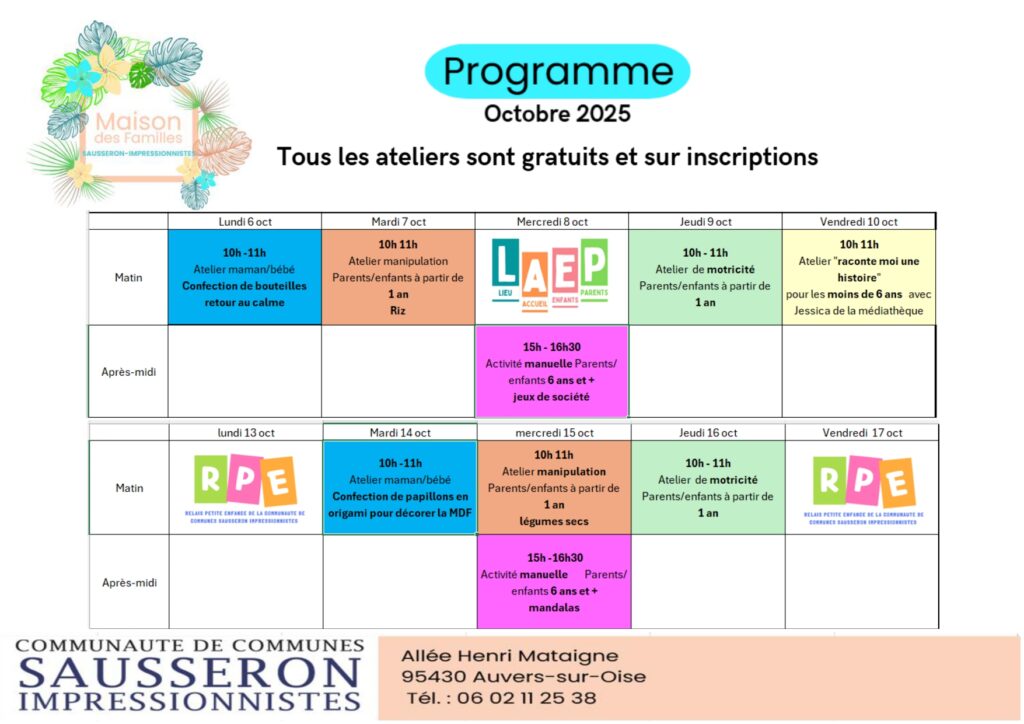 - Des ateliers parents : temps d’informations, d’échanges et de détente autour d’un thé, café